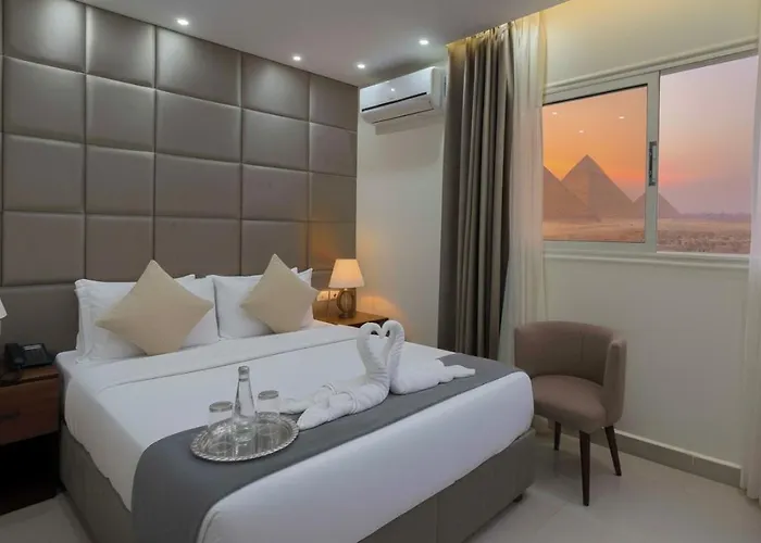 Giza Pyramids View Inn offers a continental breakfast daily. The bar area includes a lounge. Restaurant El Dar Darak treats guests with Middle Eastern and Egyptian meals and lies 500 metres away.